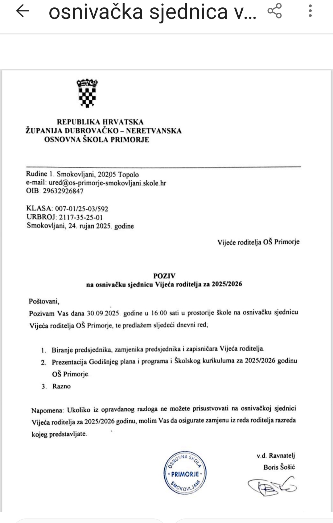 Poziv na sjednicu -nova obavijest od 24.9.2025.